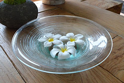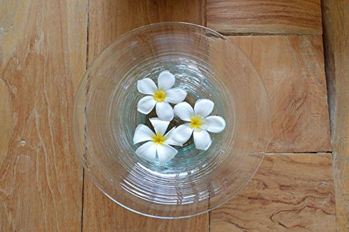 ガラス 水盤 セット trail (M)(プルメリア造花5個、白い小石付き) 【 花器 水鉢 ボウル フラワーベース アジアン雑貨 】