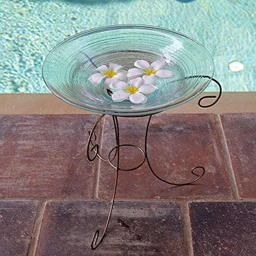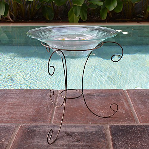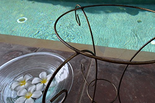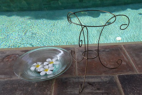- 水盤サイズ:直径/約30cm 高さ/約8cm ◆スタンドサイズ:上部直径/約20cm 高さ/約29cm 下部脚の幅/約32cm ◆素材:ガラス・アイアン ◆生産国:インドネシア バリ島