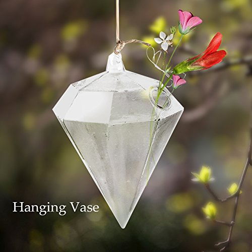 Asixx 植物栽培容器 ガラス花瓶 吊り花瓶 透明 ダイヤモンド型 ガラス製 植物 花 装飾 ぶら下げ 水耕栽培 可愛 おしゃれ ルーム装飾