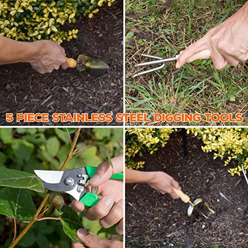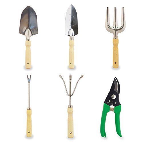 - 7-piece garden tool set - 6 tools with attractive canvas tote.