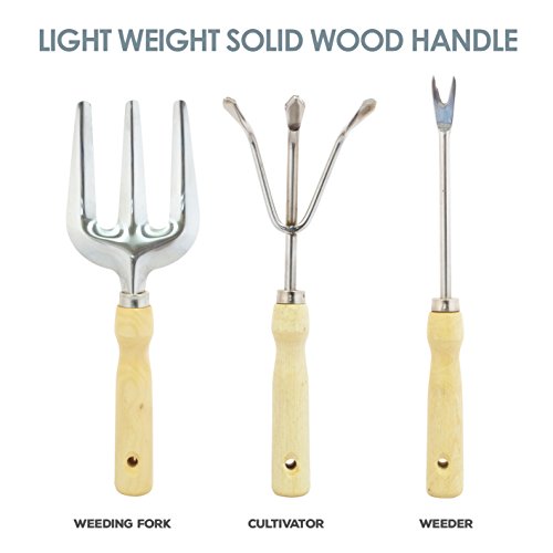 - ガーデニングツールは、人間工学に基づいた使い心地と耐久性を追求した木製ハンドルと、錆びにくいステンレスを採用した高級園芸用具。