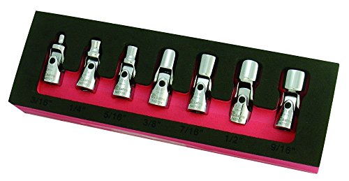 - Set includes: 3/16-Inch, 1/4-Inch, 5/16-Inch, 3/8-Inch, 7/16-Inch, 1/2-Inch and 9/16-Inch Flex Sockets