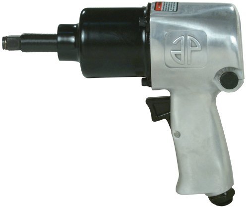 The Astro Pneumatic 1812L 1/2" Impact Wrench with 2" Anvil - Twin Hammer is ideal for general automotive work, light truck, farm, body shop, tire shop and front-end work. Durable twin hammer impact mechanism. Anvil and rotor made of special alloyed steel that is heat treated to prevent chipping or breaking. Steel hammer case provides maximum protection. Two piece construction for easy maintenance. Pressure feed lubrication system. Specifications: Square Drive: 1/2" , Free Speed: 7,000rpm, Overall Length: 6-3/4" (172mm), Net Weight: 5-3/5lbs. (2.60kg), Max. Torque: 400-Feet/lbs., Bolt Capacity: 9/16" (14mm), Air Inlet Thread NPT: 1/4", Air Hose I.D. Size: 3/8" (10mm), Avg. Air Consumption.: 4.20cfm, Air Pressure: 90-120psi.