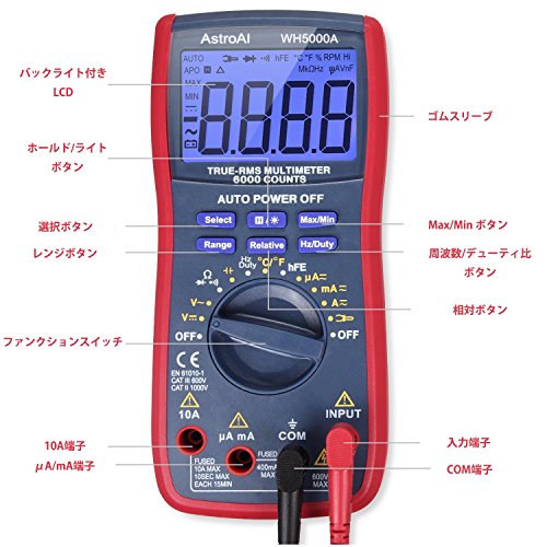 - 【安全&安心】:400mA, 600Vと10A, 600Vダブルヒューズを本体に内蔵に内蔵されております。すべてレンジに過負荷保護あり;分厚い保護ゴムによって、衝撃にも強いです;日本語使用説明書と三年保証期間付き、何かご不明な点がございましたら、お気軽にAstroAIカスタマーサビースと連絡してください;(PDFデータ版の日本語使用説明書はご注文後メールで配布しております。ご確認ください。)