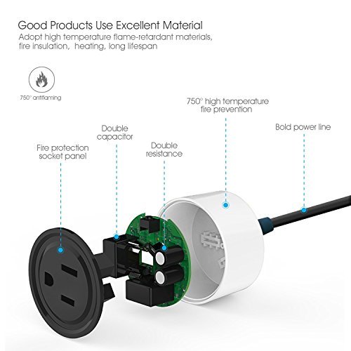 AuYou Flexible Extended Socket Unidirectional Outlet Tape Power Sockets 6.56ft Long Protective Cord Cable. Skillfull for Outlets Charger Behind Things and Hard to Reach [並行輸入品]