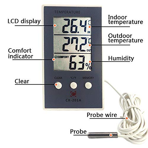 屋内湿度計LCDデジタル温度計湿度計イン/アウト温度計〜と温度センサー