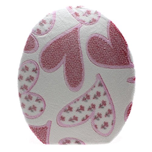 Auko Washableトイレ蓋上部カバー+ Oリングトイレシートクッションバスルームsuper-warmerソフトPlushピンク
