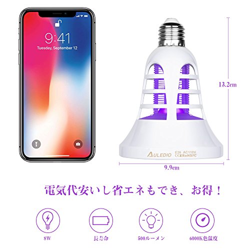 Auledio 植物育成ライト 電撃殺虫機能あり 植物の徒長を抑制 8W E26 ガーデニング 家庭菜園 温室フラワー 水槽照明 水耕栽培 多肉栽培 適用