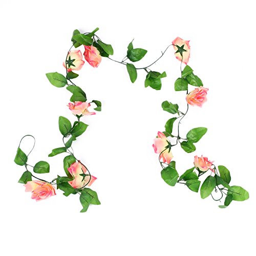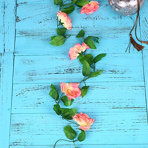 Auntwhale 4.3フィートローズフラワーガーランドの葉のシミュレーションホームルームのホテルの絹の花オフィスガーデンウェディングガーランド外部装飾