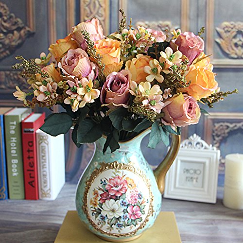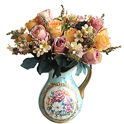 Auntwhale 人工花アールローズブーケシルクアレンジメントラージパレスローズ