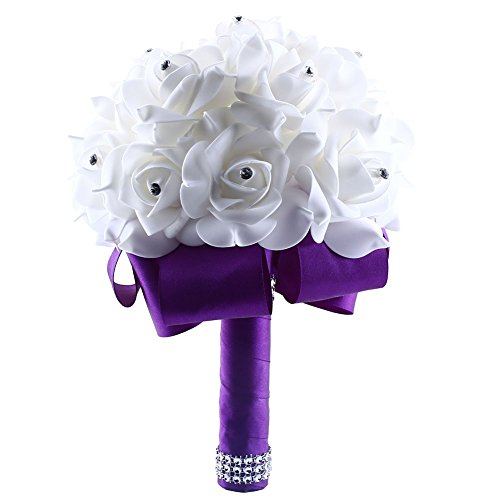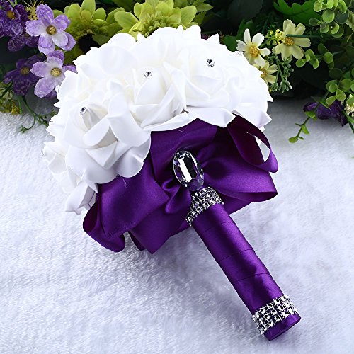 - 高品質の材料:結婚式の花束は、PE(ポリエチレン)発泡花、リボン、ラインストーンでできています。材料は環境にやさしく、安心してください。このブライダルブーケのリボンはとても柔らかく、ラインストーンは光沢があります。