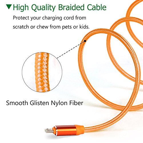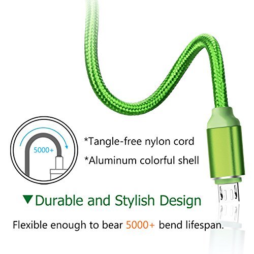 * The charging cord is cover by both soft PVC and nylon braided fiber, durable enough to bear 5000+ lifespan.