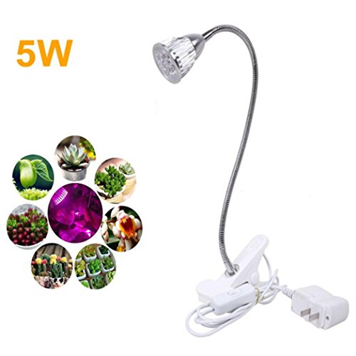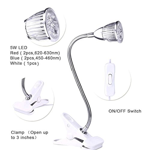 Aupooe LED植物育成ライト5W 360度調節可能 クリップ式植物ライト消費電力 長時間照明 E27 水耕栽培ランプ 低消費電力 長寿命 LED植物育成スタンドランプ 明るい照明 PSE認証済み