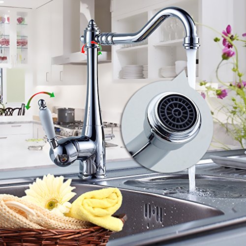 - 【360°回転可能】:蛇口が360°回転で、シンク洗浄が簡単!水が出せる使い勝手の良い混合水栓シングルレバーです。