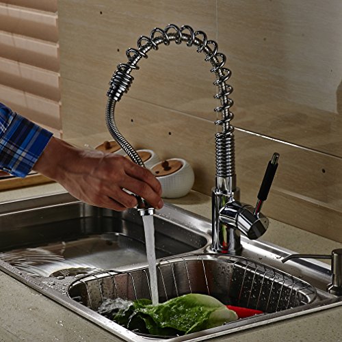 - 【ホース引出し、シンク洗浄が簡単】 360°回転可能、ハンドシャワー的に蛇口が伸ばせて、ホースはシンクのすみずみまで伸びるので、シンクの掃除がとても楽です。