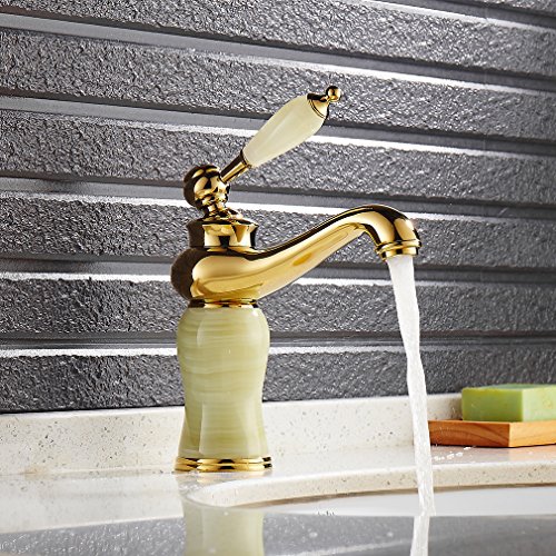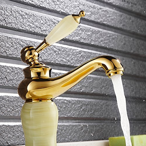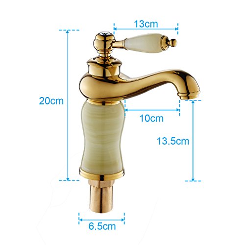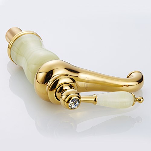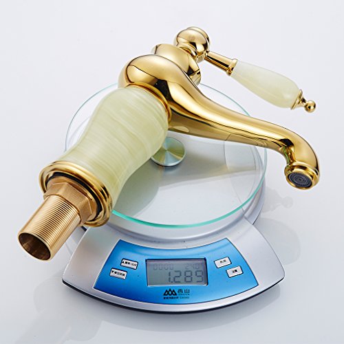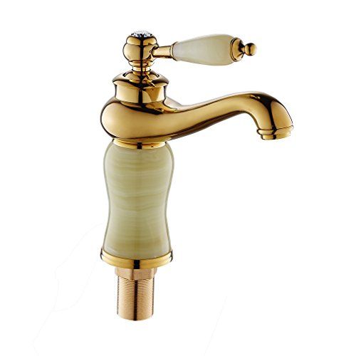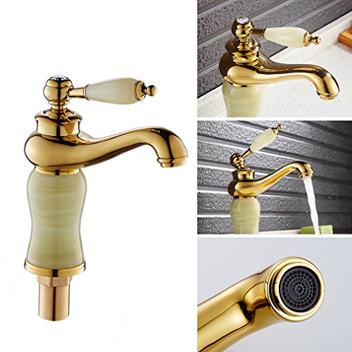 Auralum 洗面用 混合水栓 蛇口 シングルレバー ランプ型 ヨーロッパ風 手洗いボウル用 洗面台 取り付けホース付き ゴールド