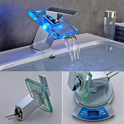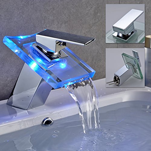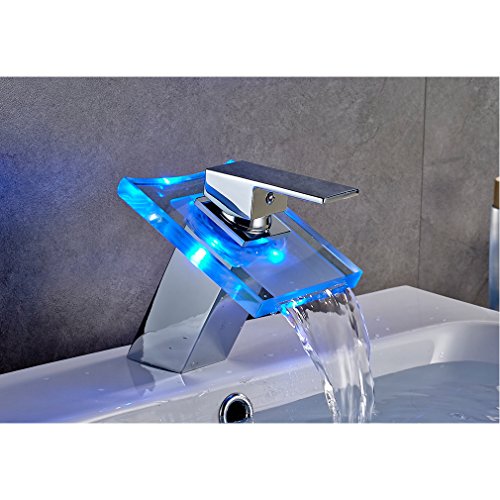 Auralum LED 洗面台用水栓 蛇口 混合栓 お湯の温度でLEDが3色に変わる シングルレバー 立水栓 個性あふれるデザイン 手洗いボウル用 水道 トイレ用