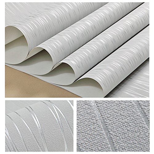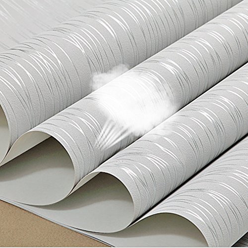Auralum 爽やかな縞目調壁紙 ノリなし 子供部屋 ルームインテリア リビング リフォーム 和風 おしゃれな壁紙 防水 55cm×10m (シルバーグレー)
