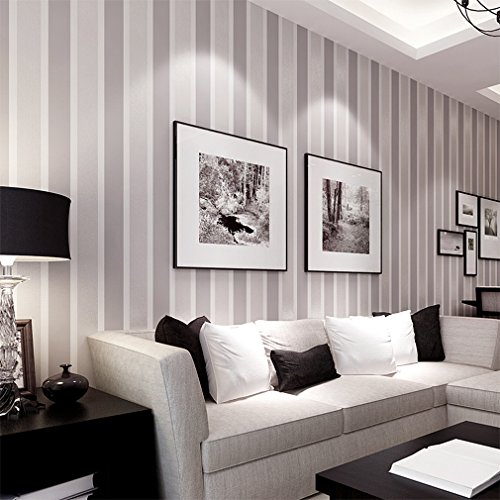Auralum 貼ってはがせる壁紙 不織布壁紙 ノリなし DIY 壁紙 はがせる 賃貸 リビング ルームインテリア おしゃれ エレガント ラグジュアリー モダン 53cm×10m (シルバーグレー)
