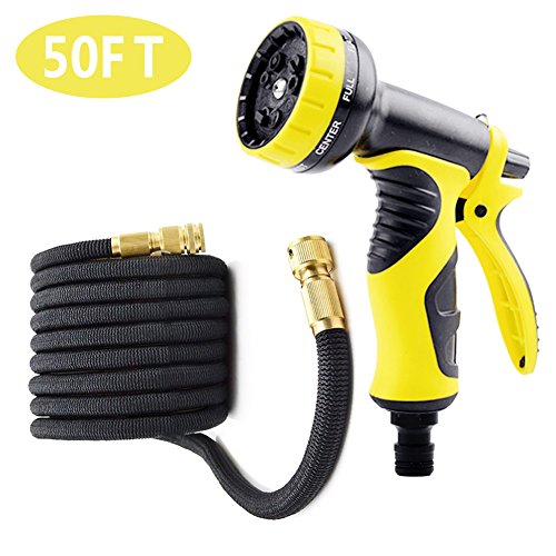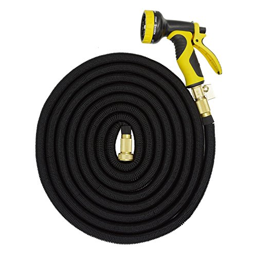 伸びるホース 伸縮ホース マジックホース 3倍に伸びる 超強化素材 銅製コネクタ 9パターン散水ノズル ガーデニング 花園 洗車 掃除用 黒 (5m→15m(50FT))