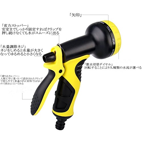 - ★【多機能】9パターン散水ノズルがあり必要に応じて選択可能です。水量調節も簡単で効率的に水やりができます。ベランダ、バズルームの掃除、高い所の掃除、ガーデニング、洗車、花園灌水、玄関先の掃除、ペットシャワー、夏の散水、冬の融雪などのシーンにも活躍しています。