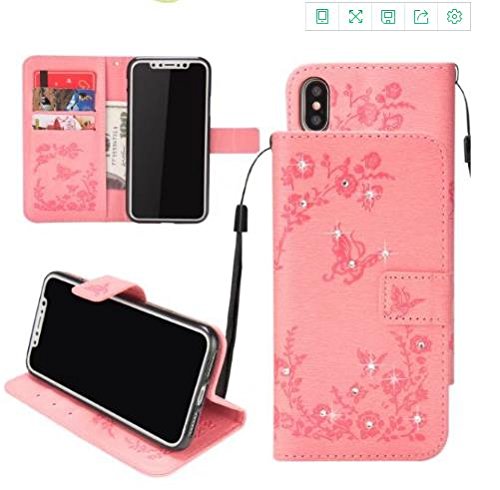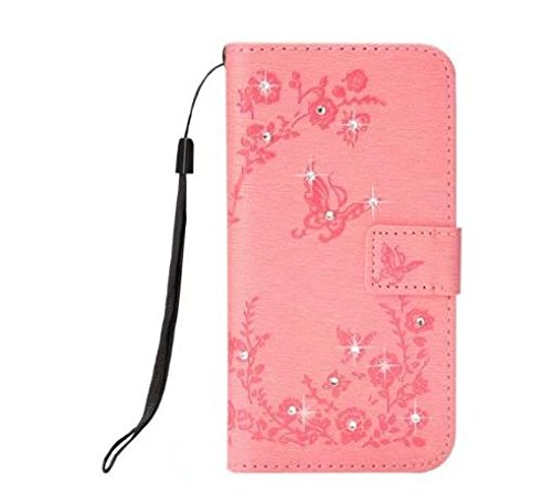 iPhone Secret Garden財布ケース、Auroralove Iphoneキラキラ光るダイヤモンドバタフライフラワーCase Forガールズレディースクレジットカードキックスタンド機能付き iphone 8/7 plus 5.5 Inch ピンク