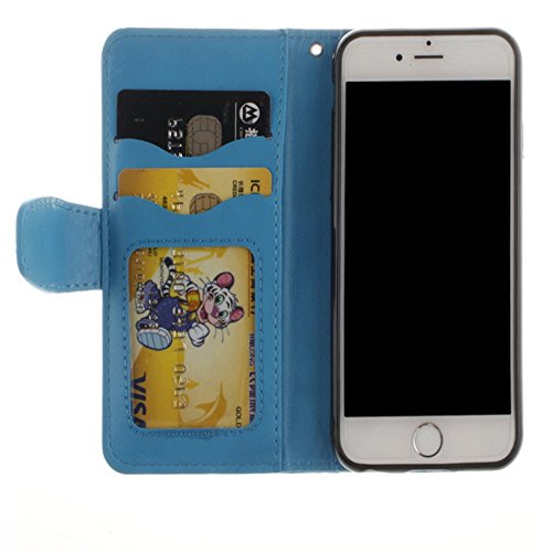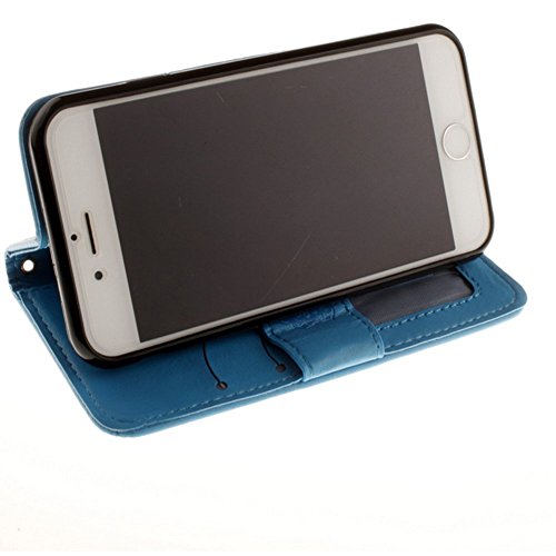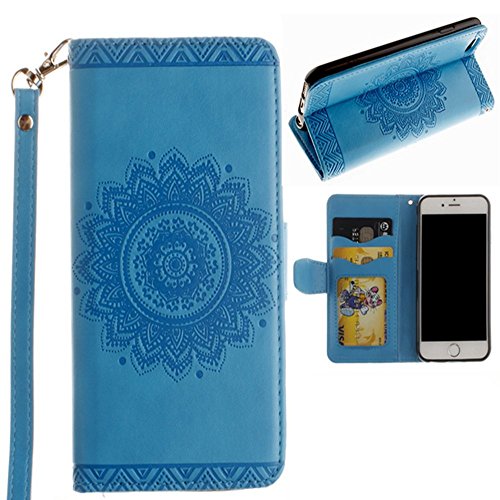 iPhoneフラワー財布case-auroralove IphoneクラシックEthnic曼荼羅花柄PUレザーカードスロットスタンド機能ケースwith Leather Strip forガールズレディース iphone 5/5s/se ブルー