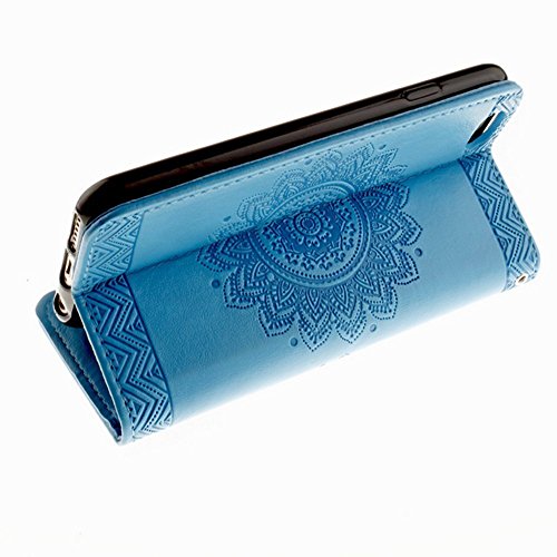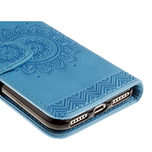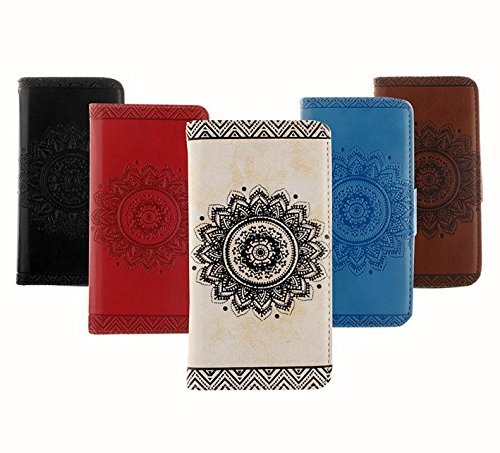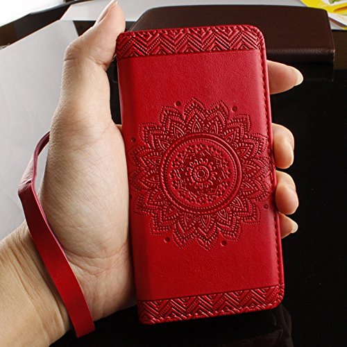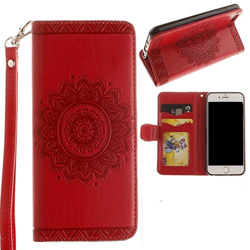 iPhoneフラワー財布case-auroralove IphoneクラシックEthnic曼荼羅花柄PUレザーカードスロットスタンド機能ケースwith Leather Strip forガールズレディース iphone 8 2017 レッド