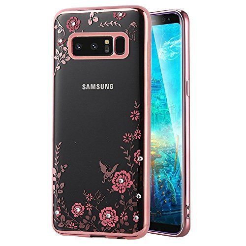 Note 8ケース フラワーバタフライ クリスタル熱可塑性ポリウレタン オーロララブ ソフトスリム メッキ ゴムバンパーカバー サムスンNote 8用 ラインストーン付き ダイヤモンド ガールズ レディース Samsung galaxy note 8