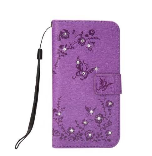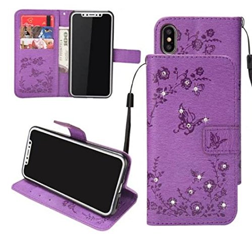 iPhone Secret Garden財布ケース、Auroralove Iphoneキラキラ光るダイヤモンドバタフライフラワーCase Forガールズレディースクレジットカードキックスタンド機能付き iphone 8/7 plus 5.5 Inch パープル