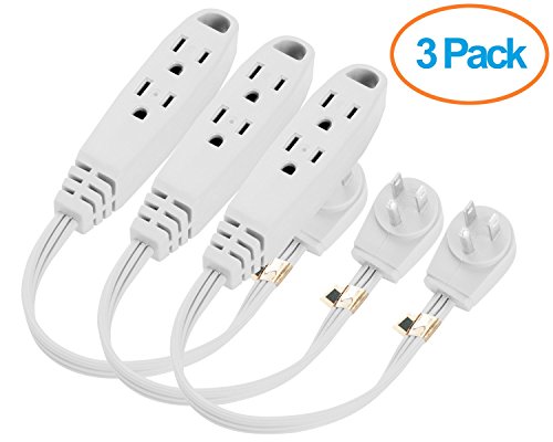 - 16-gauge, 3 conductor wire, indoor outdoor power extension cord cable - 1 Foot - 3 Pack.