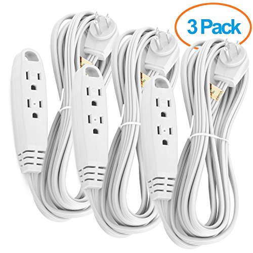 Aurum Cables 12-Feet 3 Outlet Extension Cord Indoor/Outdoor Extension Cord 16AWG 3 Pack - White - UL Listed [並行輸入品]
