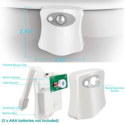 ausayeのトイレライトサイズ: 6.8 * 6.7 * 1.7 cm(2.7 * 2.6 * 0.7inch)柔軟性の高いアームを延長し約4インチからハウジングコンパートメントがあります。