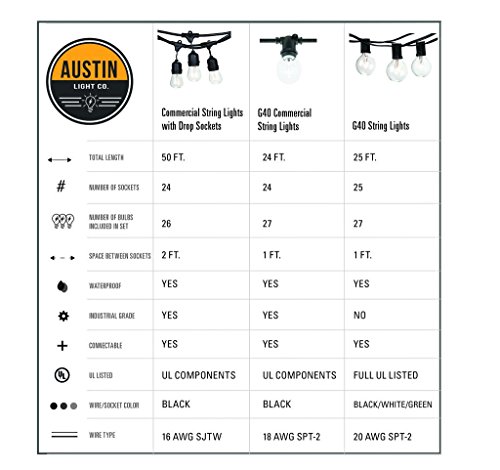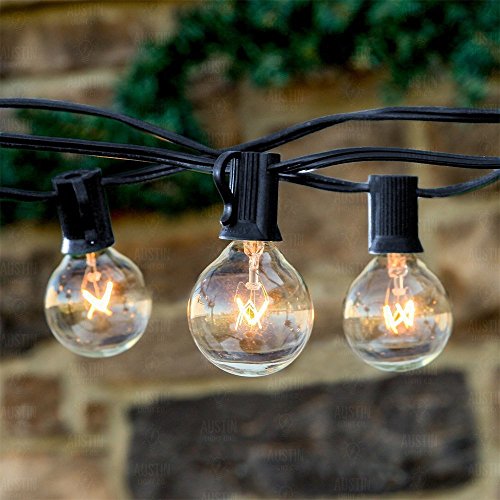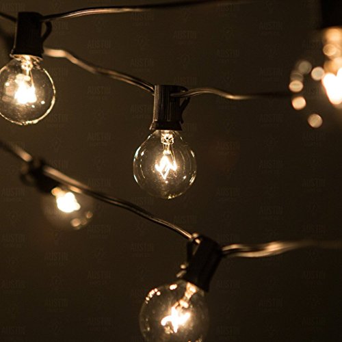 25 Foot G40 Globe String Lights With Bulbs - Black Wire - By Austin Light Co. - UL Listed. Indoor and Outdoor. Commercial Grade. Great for patios, cafés, parties, homes, bistros, weddings, backyards [並行輸入品]