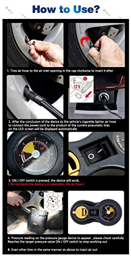 - 本製品のエアホースをタイヤに接続すると、タイヤの現在の空気圧が圧力計に表示されるので、頻繁に空気圧をチェックすることができます。