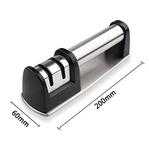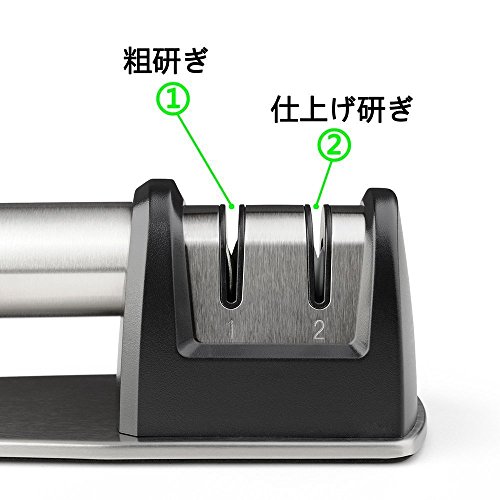- 「ステンレス製で長持ちできる」:美しく高級感を漂う高品質ステンレス製の包丁研ぎ器は耐久性があり、錆びにくく長期に使用できる!