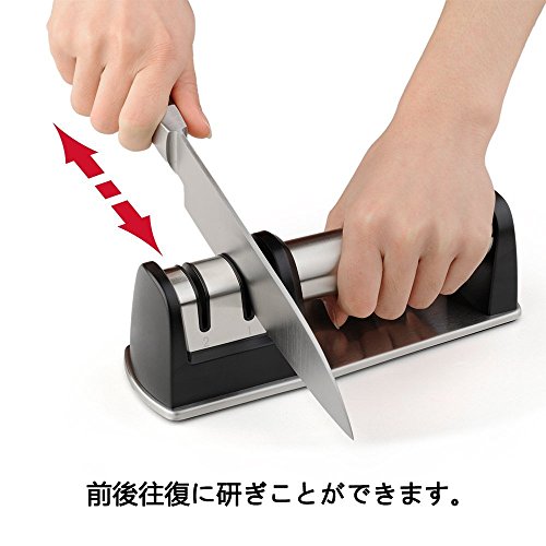 - 「滑り止め台座付き、使いやすい」:ラバー仕様の滑り止めのゴム台座で、しっかりと固定でき、安全に刃を研げます。また、あまり力を入れず家族だれでもサッと研げるので料理中に切れ味も良くなります。