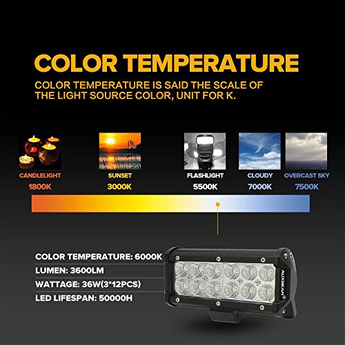 Auxbeam 7" 36W LED Work Light Bar 3600LM CREE 60 Degree Flood Beam for Jeep Off-road SUV Truck Car ATVs 4x4 4WD Boat [並行輸入品]