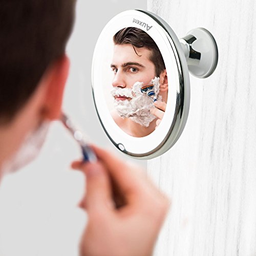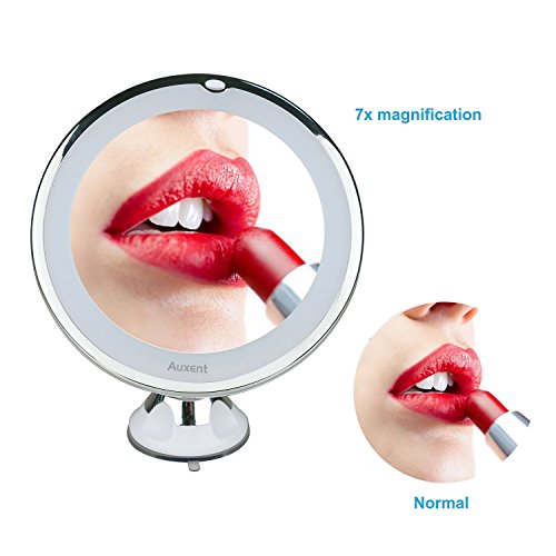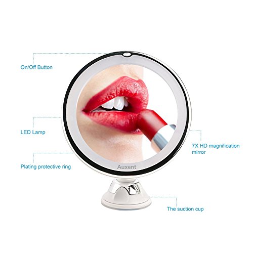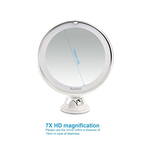 Auxent LED化粧鏡 7倍率吸盤付き拡大鏡360度回転 化粧ミラー 卓上ミラー 角度調整可能 吸盤ロック付き 壁掛けメイクミラー ガラスに 携帯 コードレス 白