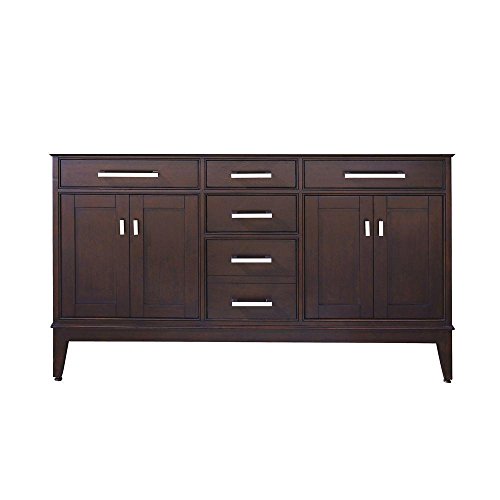 スタイリッシュでありながら装飾を拡張機能設計のavanityマディソン60ではありません。ダブル洗面化粧台ベースがありません。強力な、きれいなラインに仕上げた暖かい茶色の色相と詳細にアンティークなハードウェア追加クラシックの魅力を使用して部屋にあっても、豊富な収納スペースで簡単整理が容易になりました。寸法:長さ152.4㎝( 60 W x 21d X 34hインチ。。から選択できる仕上げがされています。バーチ突板、ポプラのソリッド、開発した木材で作られています。カウンター、シンクと含まれていません。独立したインストールではありません。4シェルフと5つの引き出し。soft-closeスライドとヒンジ。