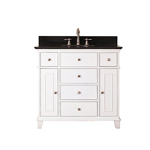 Avanityウィンザー36で。Vanity withブラックGraniteトップとアンダーマウントシンクinホワイト仕上げ