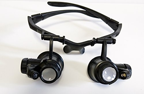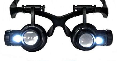 LED ライト 照明 付 メガネ 拡大鏡 ヘッド ルーペ 10倍 20倍 ベルト 変更 可能 時計 修理 精密 作業