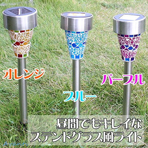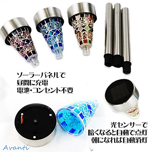 Avanti モザイク柄がやわらかく燈る ステンドグラス風 ソーラーライト(3本セット) 自動点灯/自動消灯 ガーデンライト電源不要 簡単設置 防水仕様 ガーデニング 庭 屋外