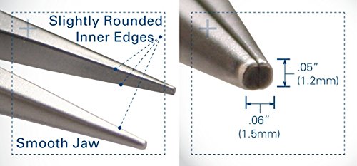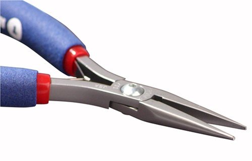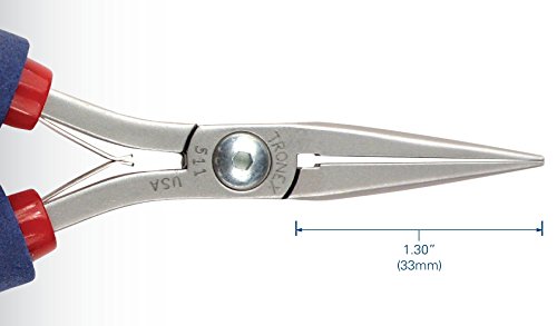 Cushion grips (ESD Safe) with SS leaf springs. Tronex Model 511 chain nose pliers with long, smooth jaw. Exceptionally fine tips (each is .050" x .030") Four edges of the jaw are "eased" (or slightly rounded) to avoid workpiece damage, strong joint with unique Tronex bearing ring design, cushion grips (ESD Safe) with SS leaf springs. Made in USA