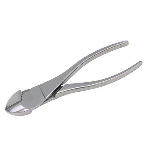 Also known as Diagonal cutting pliers or dike pliers, this tool has cutting edges that are beveled for close cutting and hardened for long-lasting sharpness and durability. Pliers have an oval-shaped head and are manufactured from 400 Series stainless steel. The joint rivet is closer to the cutting edge to provide more cutting power than general purpose pliers. Designed for cutting copper or soft steel wire, this stainless steel pliers also offers excellent corrosion resistance. The 400 Series stainless steel pliers with plain handles is also autoclavable for sterile environments.
