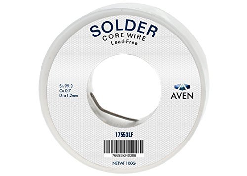 1.2mm diameter. This spool of Aven Solder contains 3.5 ounces (100g) of 1.2mm solder featuring a chemistry of 99.3% tin and 0.7% copper. This lead-free solder alleviates concerns about the effects of lead on the body and on the environment. Ideal for general purpose soldering including PC board repair and tinning wires.