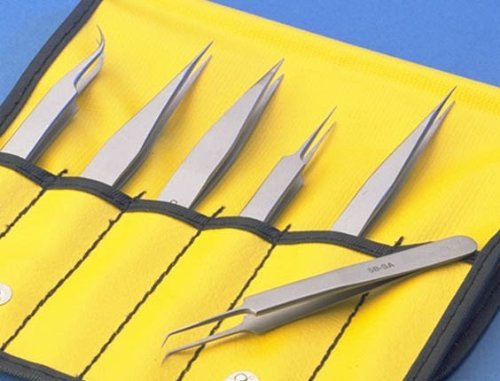 6 of our most popular tweezers supplied in a plastic pouch. Contains tweezers pattern AA-SA, OO-SA, OOD-SA, 3C-SA, 5-SA and 7-SA. Made of Stainless steel, anti magnetic and anti acid.