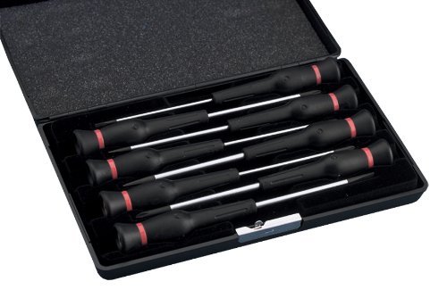 The Aven 13715 eight-piece metric precision screwdriver set is for use with precision screws and electronic applications. The black-oxide tips are machined and hardened for a precise fit, durability, and corrosion resistance. Ergonomically-molded handles with free-spinning rotation caps allow fingertip rotation while pressure is applied. A 75 mm blade length provides access to hard-to-reach areas. The set includes four slotted (2.0 mm, 2.5 mm, 3.0 mm, and 4.0 mm) and four Phillips (Nos. 00, 0, 1 and 1.5) screwdrivers, and a fitted case.Aven manufactures optical inspection tools, precision tools, and bench accessories for industrial, scientific, and research applications. The company was founded in 1983 and is headquartered in Ann Arbor, MI.What's in the Box?Slotted screwdriver, 2.0 x 75mmSlotted screwdriver, 2.5 x 75mmSlotted screwdriver, 3.0 x 75mmSlotted screwdriver, 4.0 x 75mmPhillips screwdriver, No. 00 x 75mmPhillips screwdriver, No. 0 x 75mmPhillips screwdriver, No. 1 x 75mmPhillips screwdriver, No. 1.5 x 75mmFitted storage case