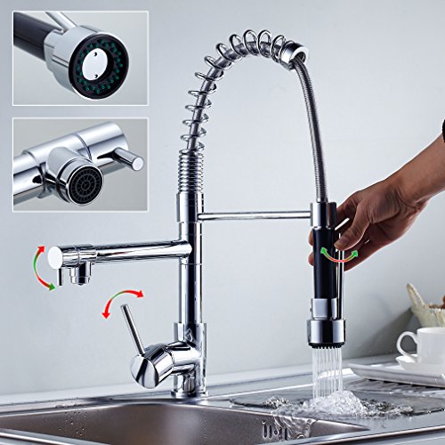 Auralum® キッチン 水栓 整流 シャワー両用 混合水栓 台所用 360°回転可能 陶磁弁シート