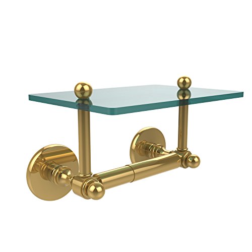 Allied真鍮Prestige Skyline Two Post Toilet Tissue Holder withガラスシェルフ P1000-GLT-24-PB 1